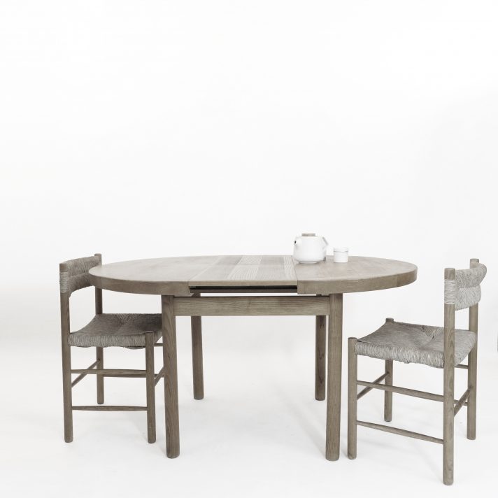 From a round table with a diameter of 105 cm it can turn into a 143cm long oval table.