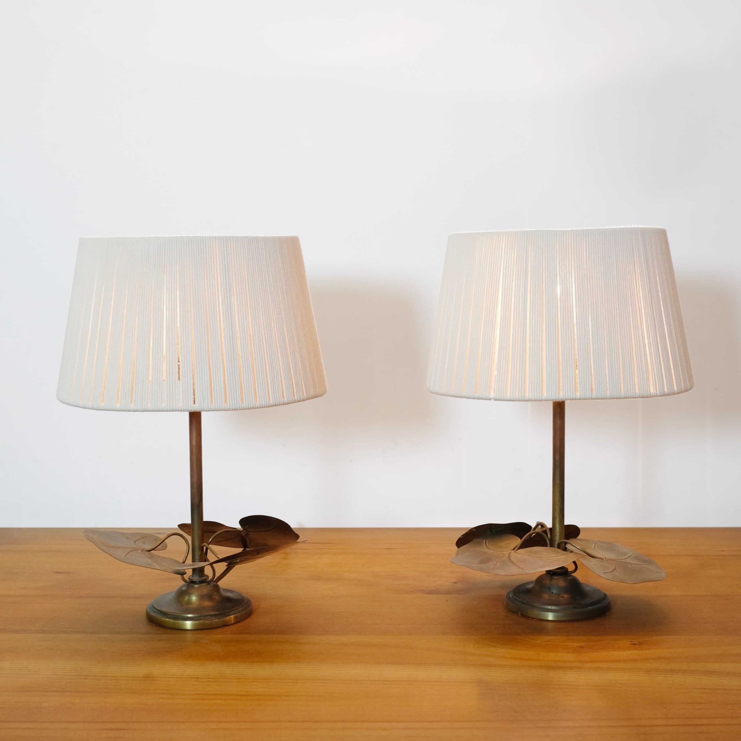 Florart, pair of table lamps with lotus leaf motif, 1970s