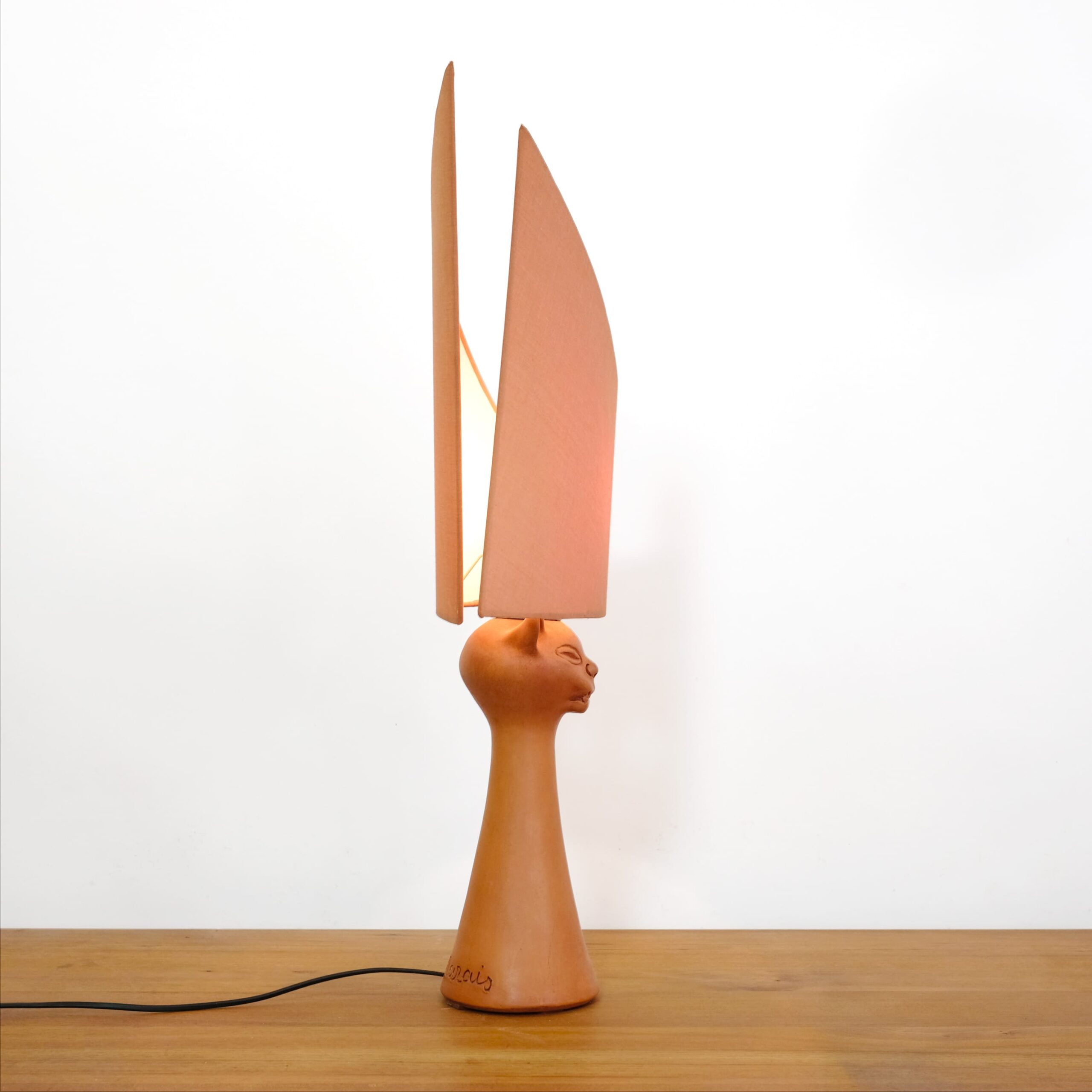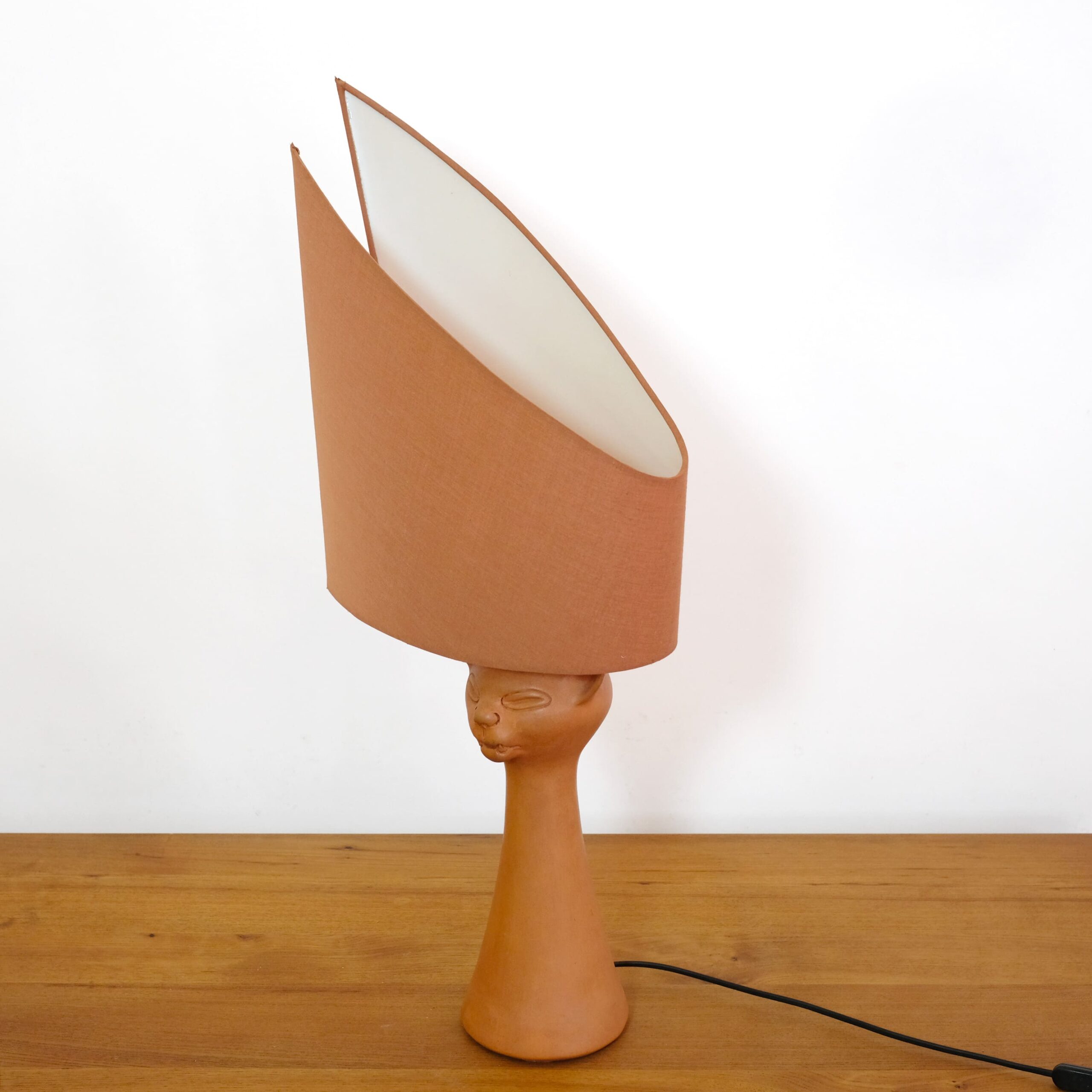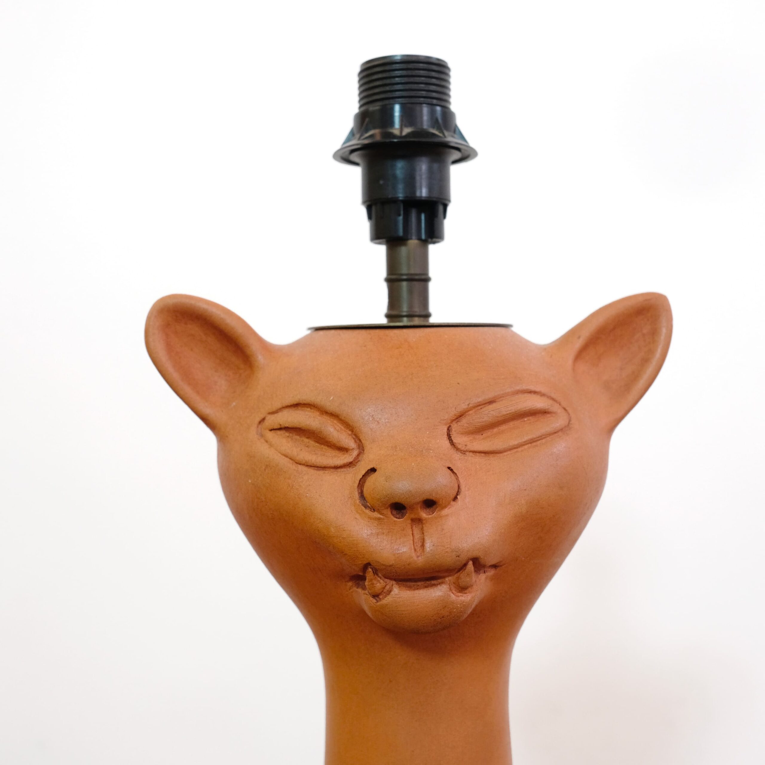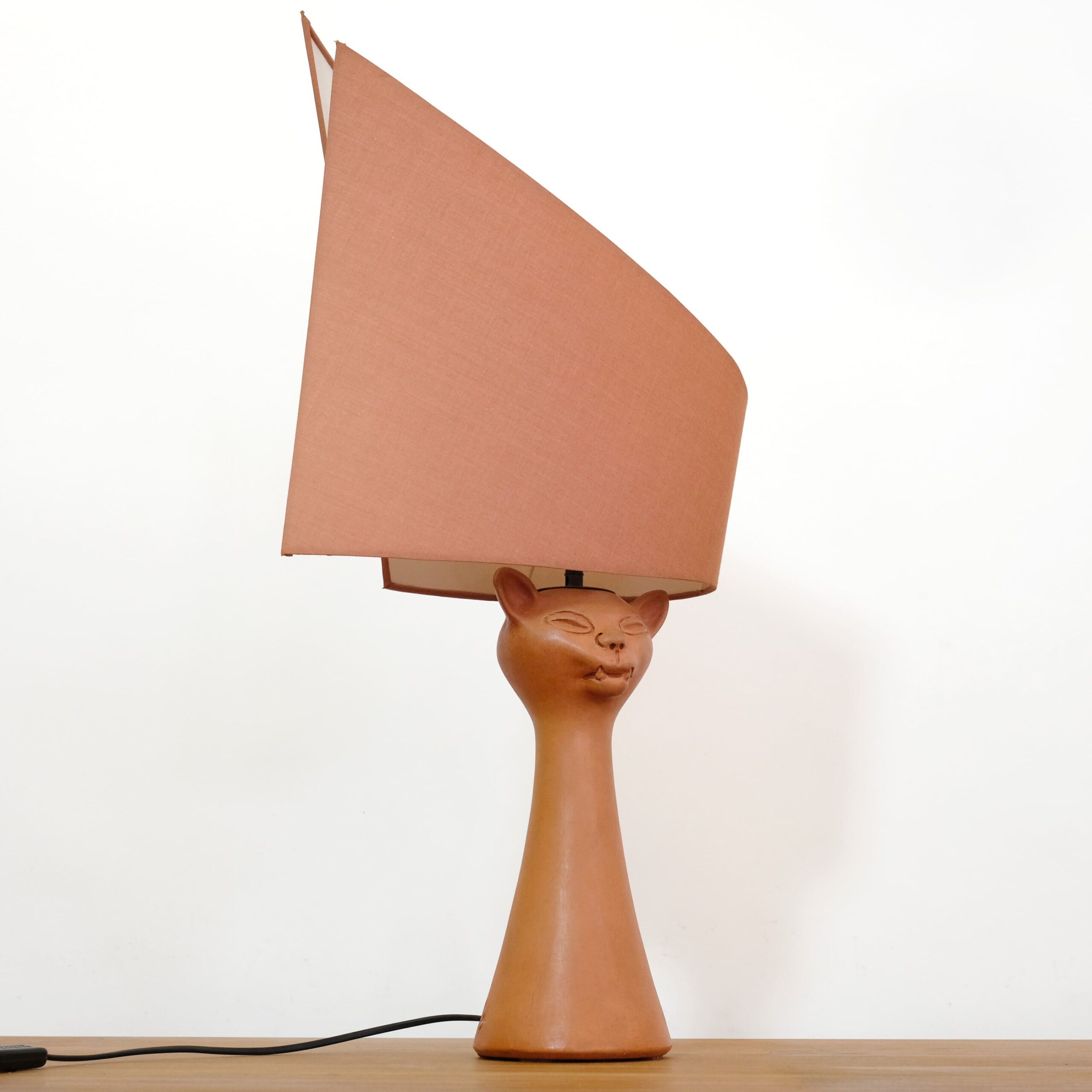 A red stoneware cat head lamp by Jean Marais (1913-1998).