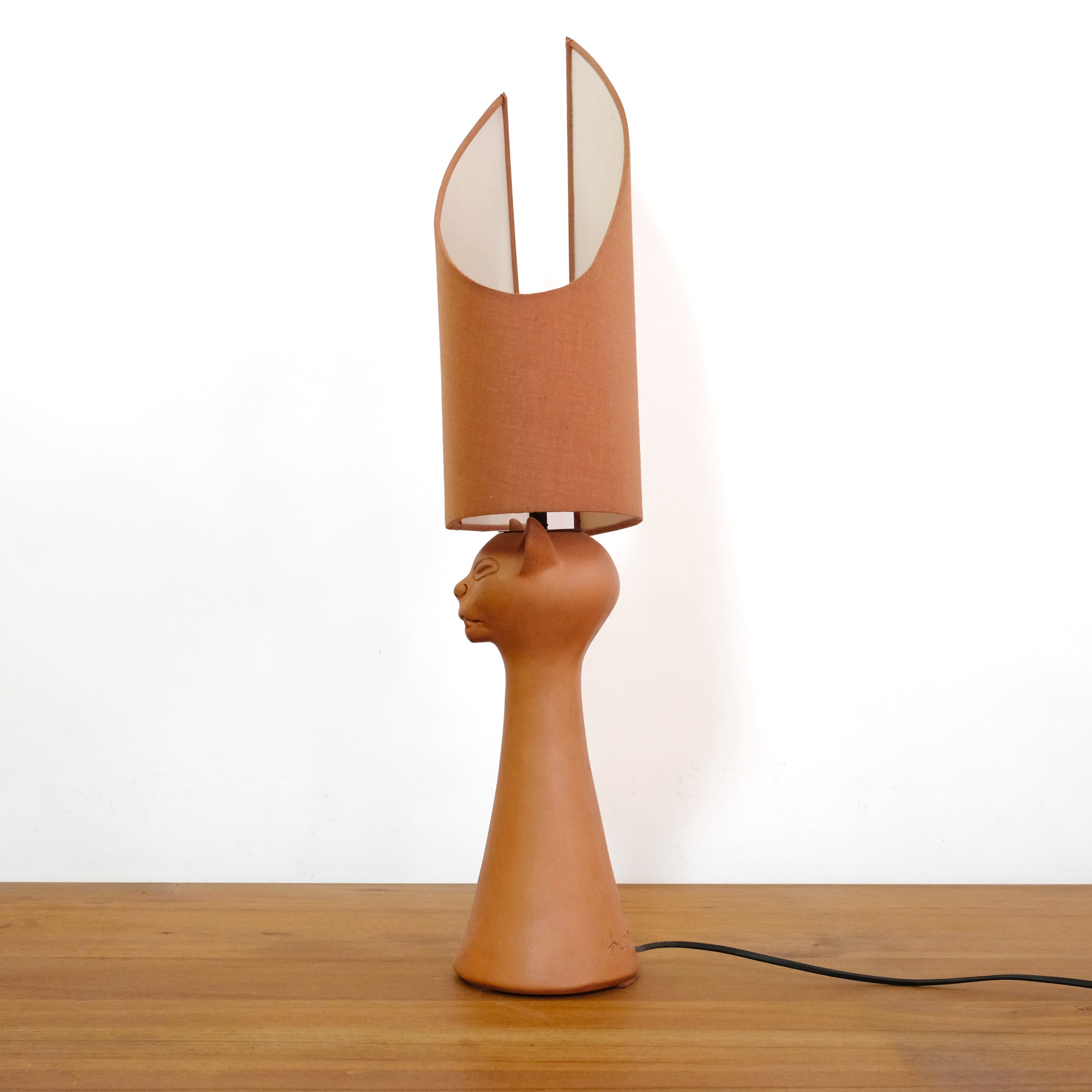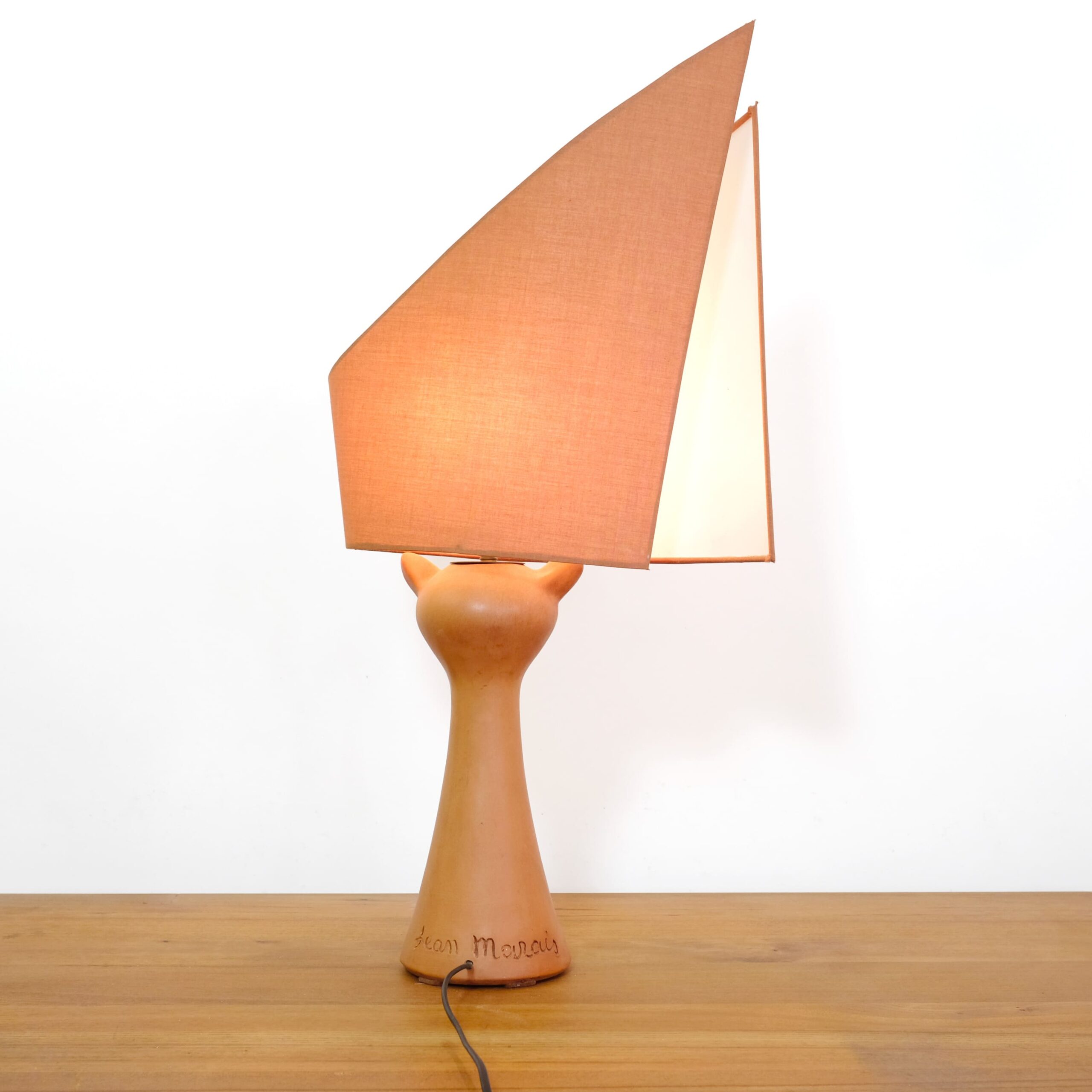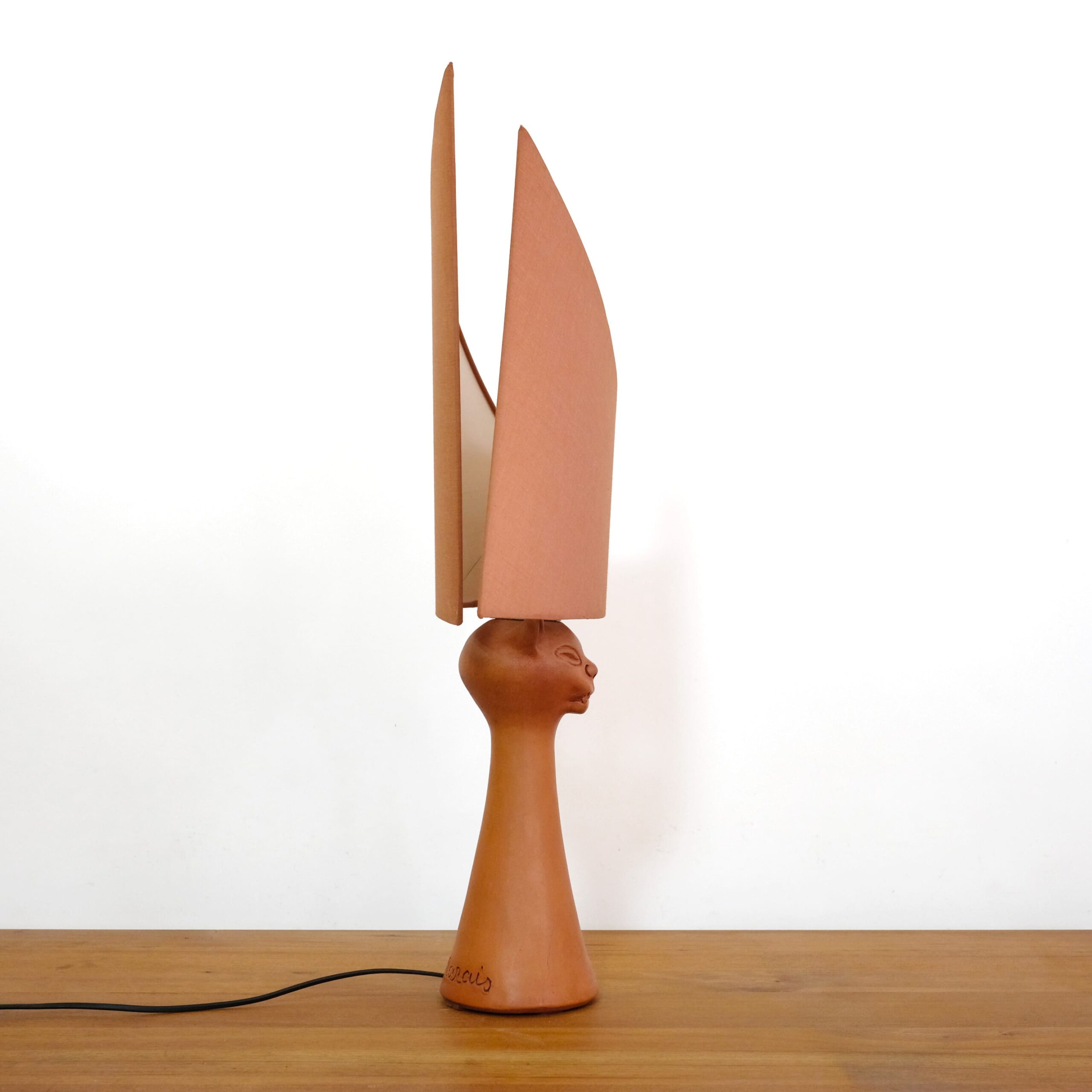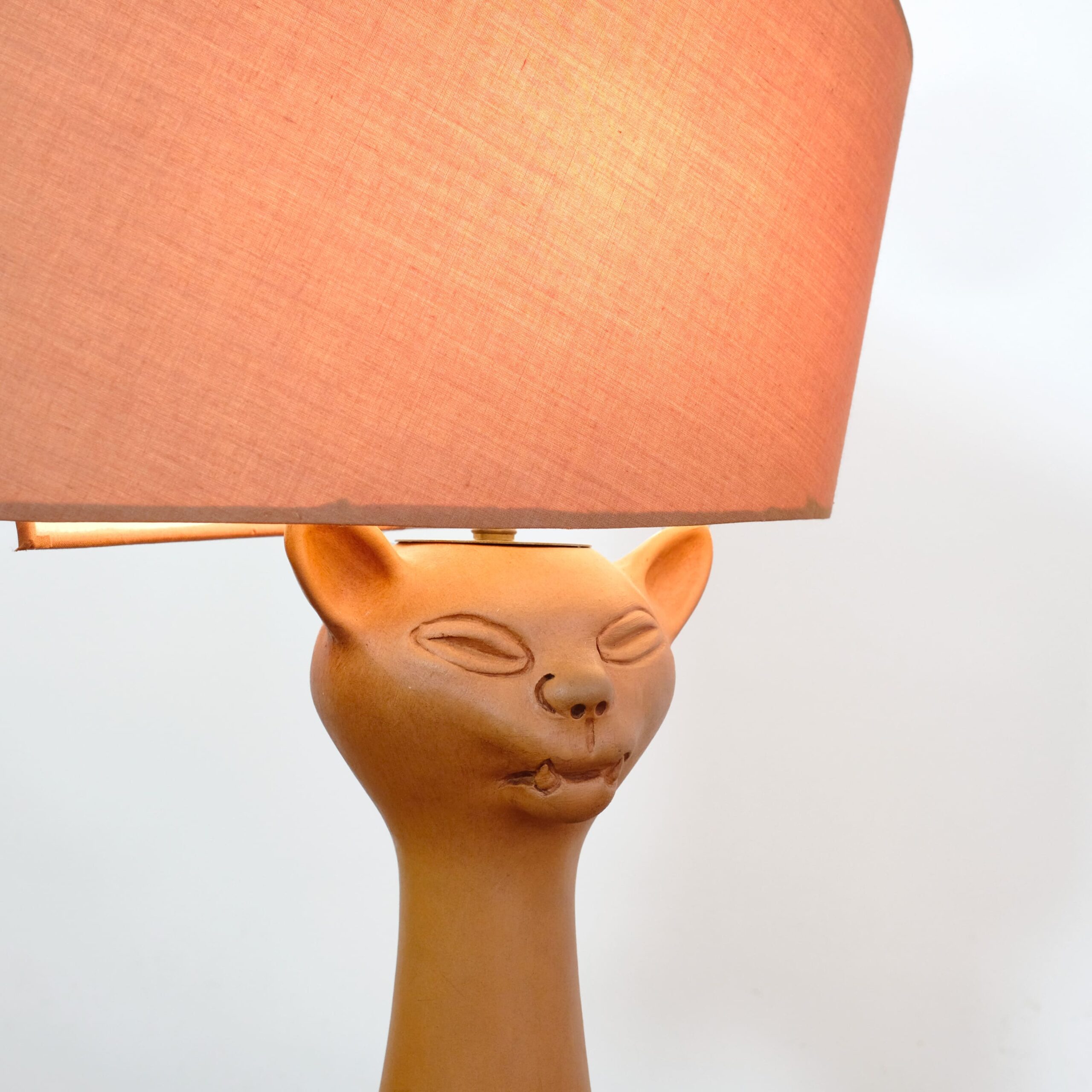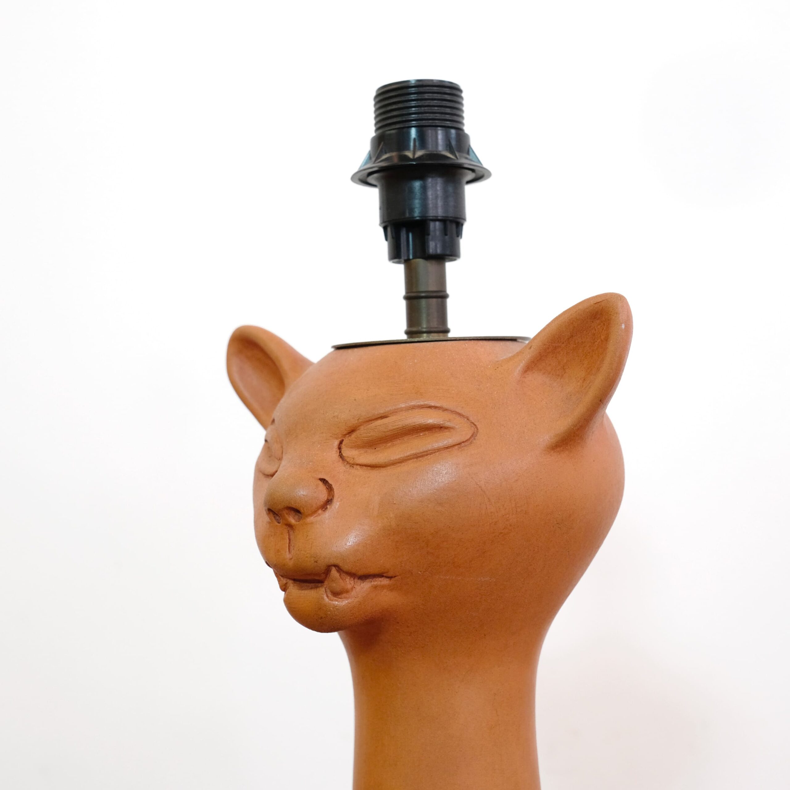A red stoneware cat head lamp by Jean Marais (1913-1998).