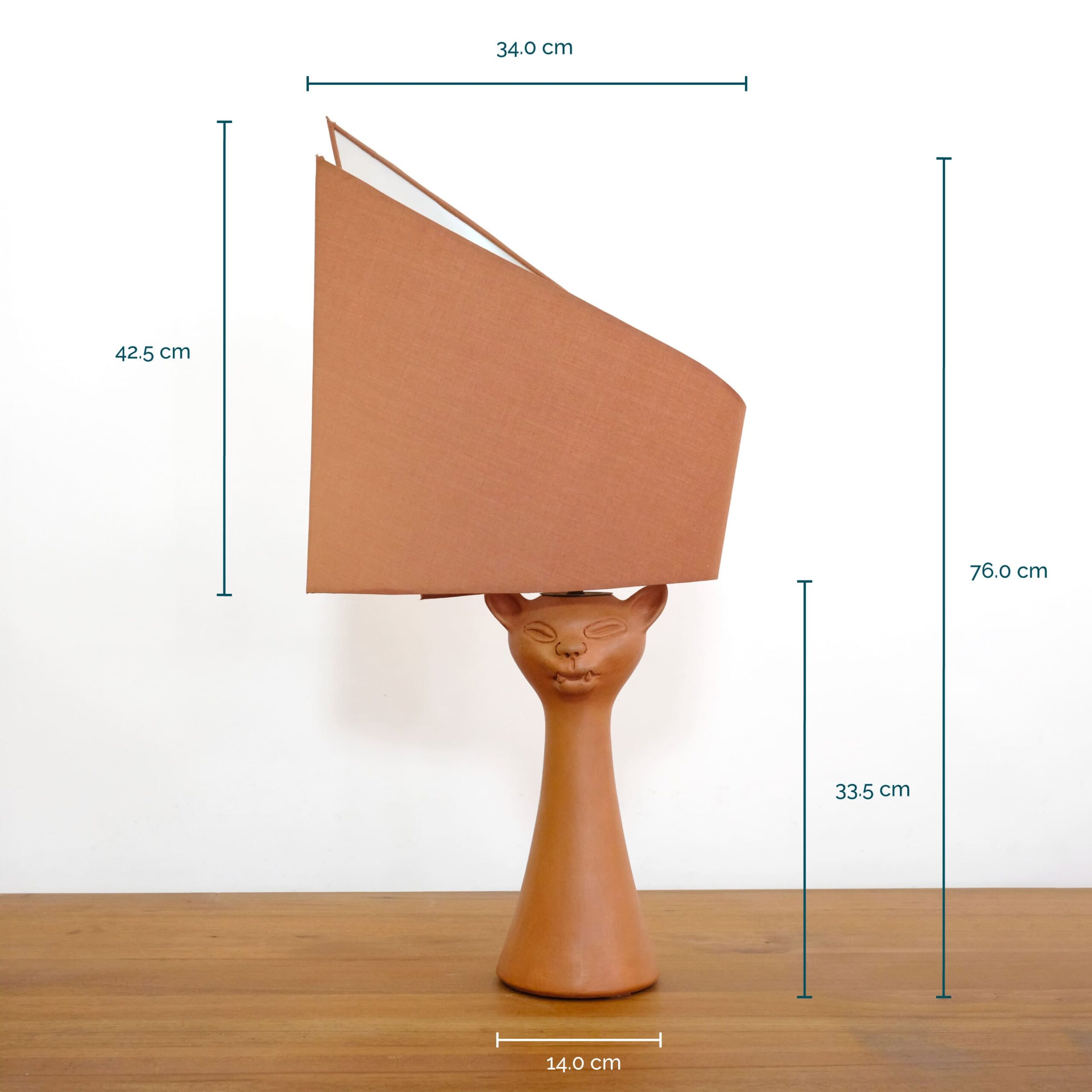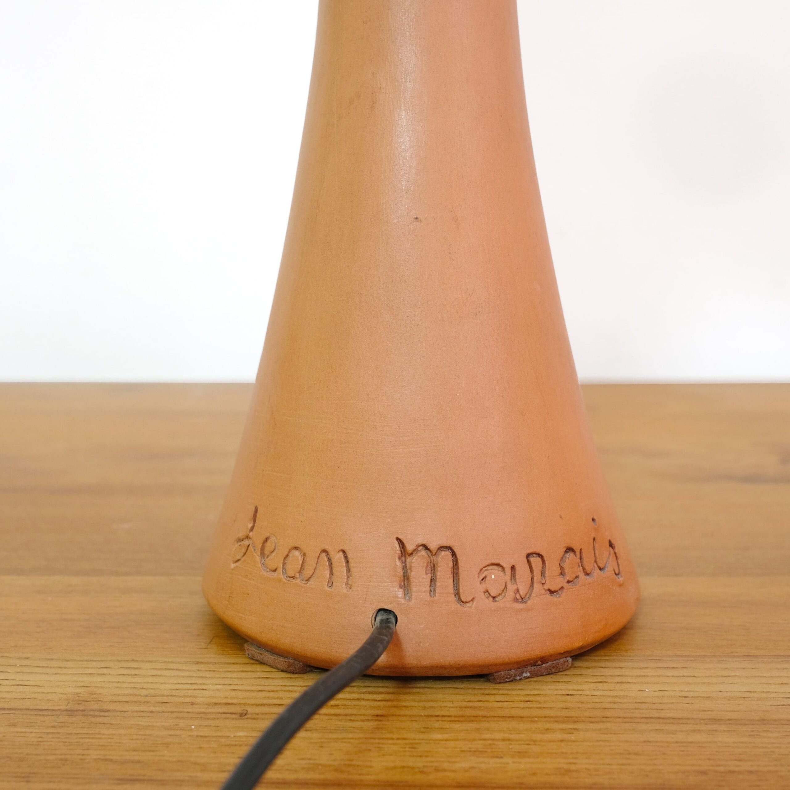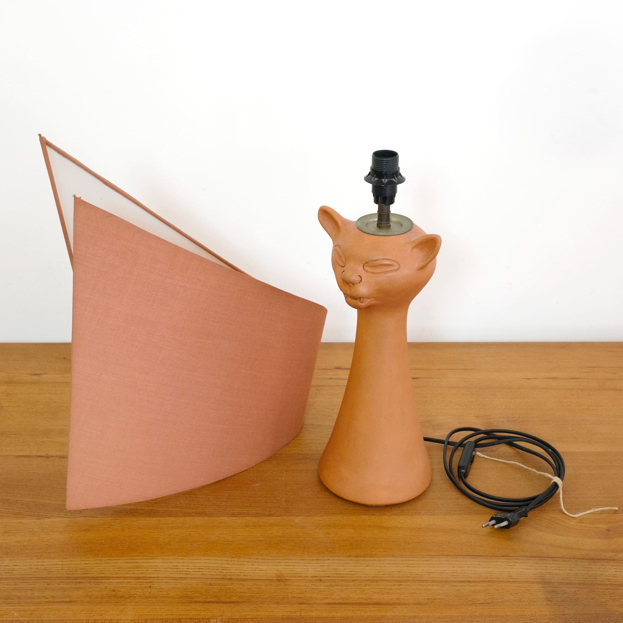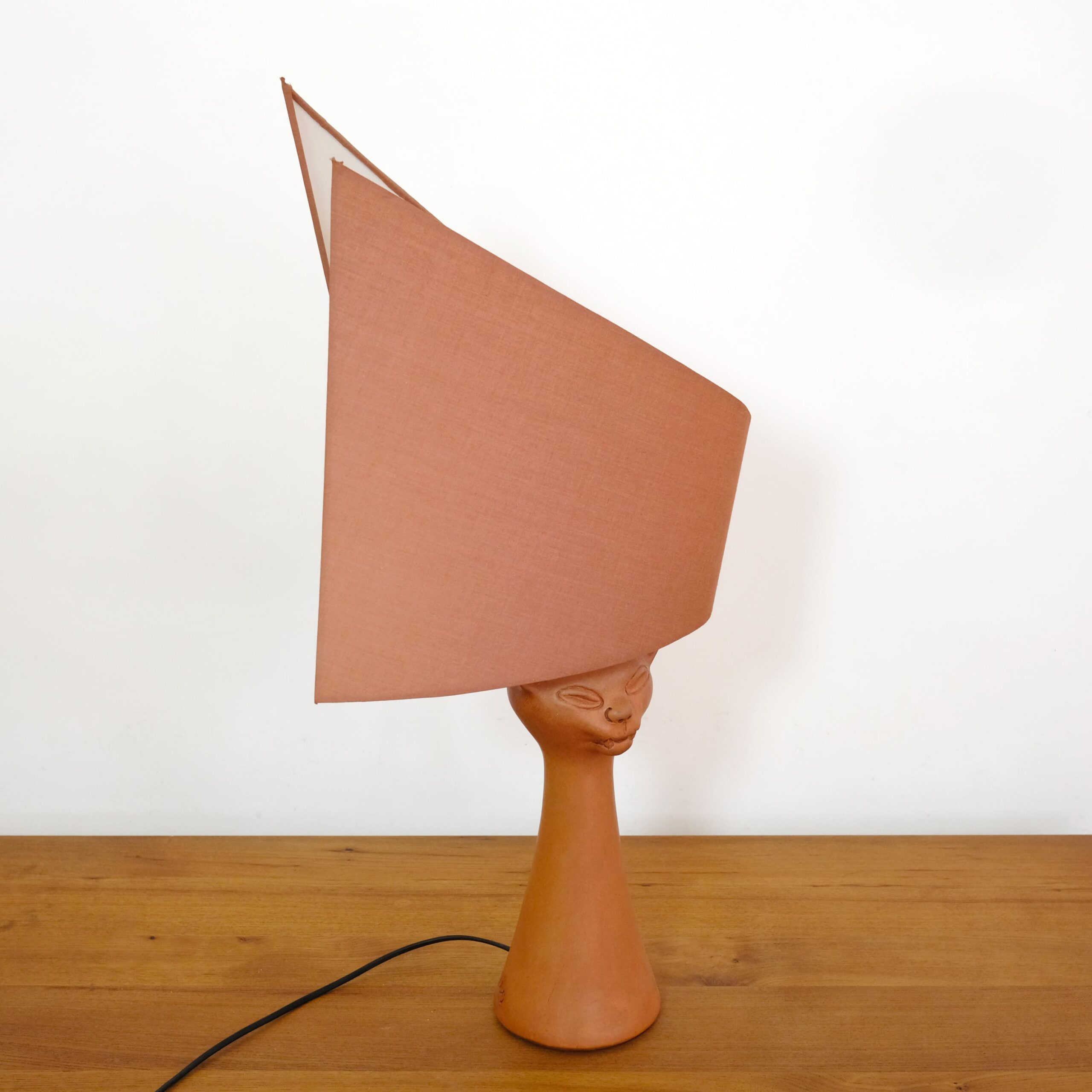 A red stoneware cat head lamp by Jean Marais (1913-1998).