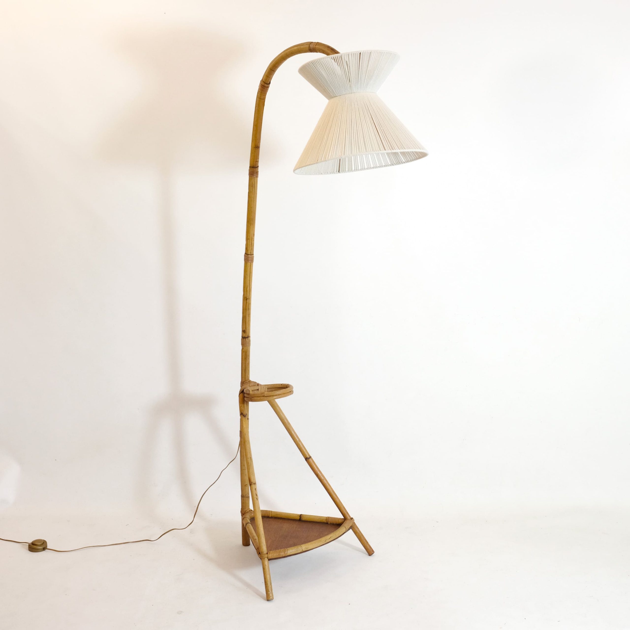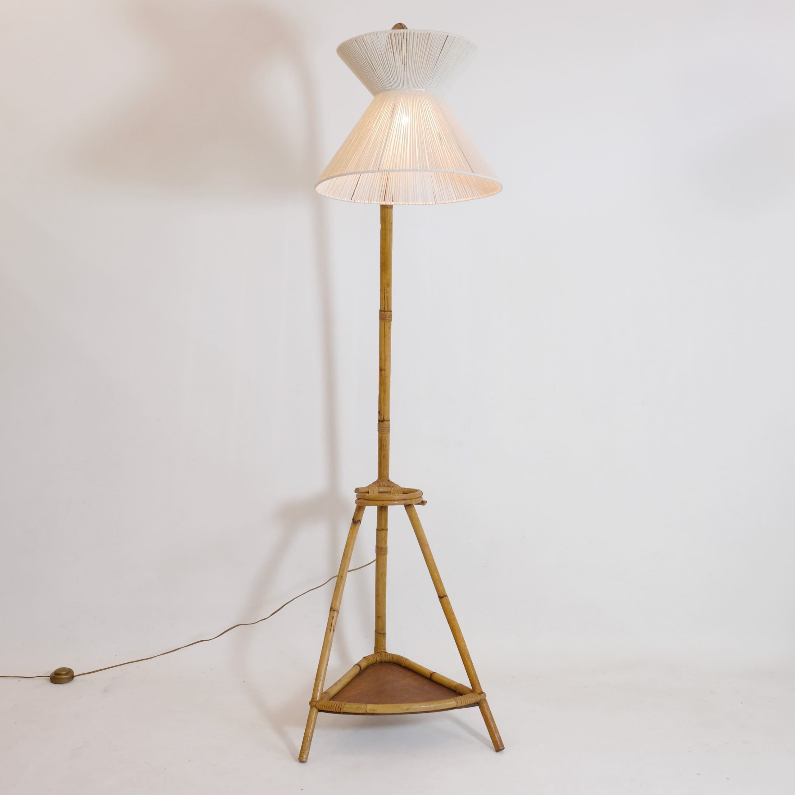 The cotton thread diabolo lampshade was handcrafted/made in the workshop.