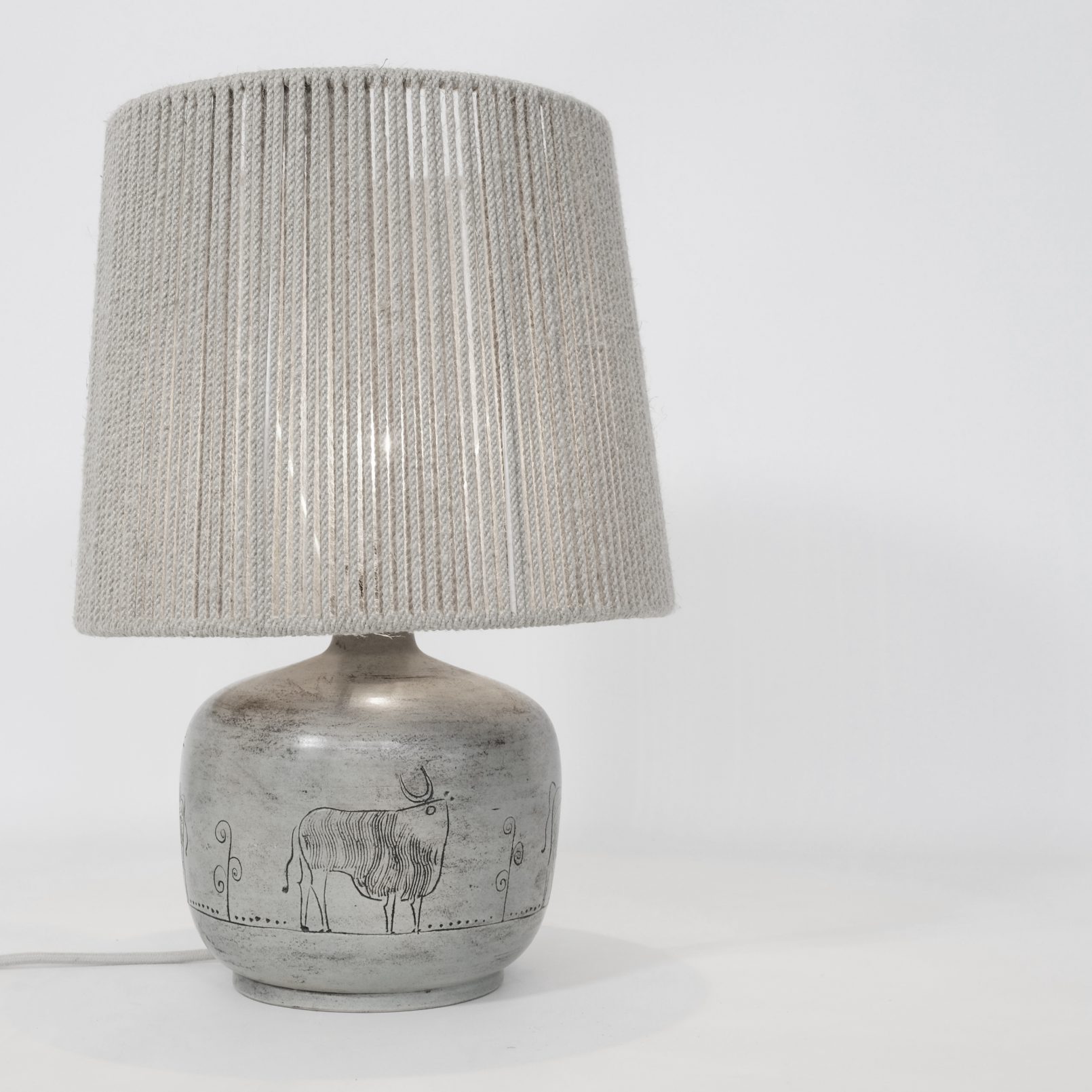Lampe de table de Jacques Blin, décor aux bovidés.