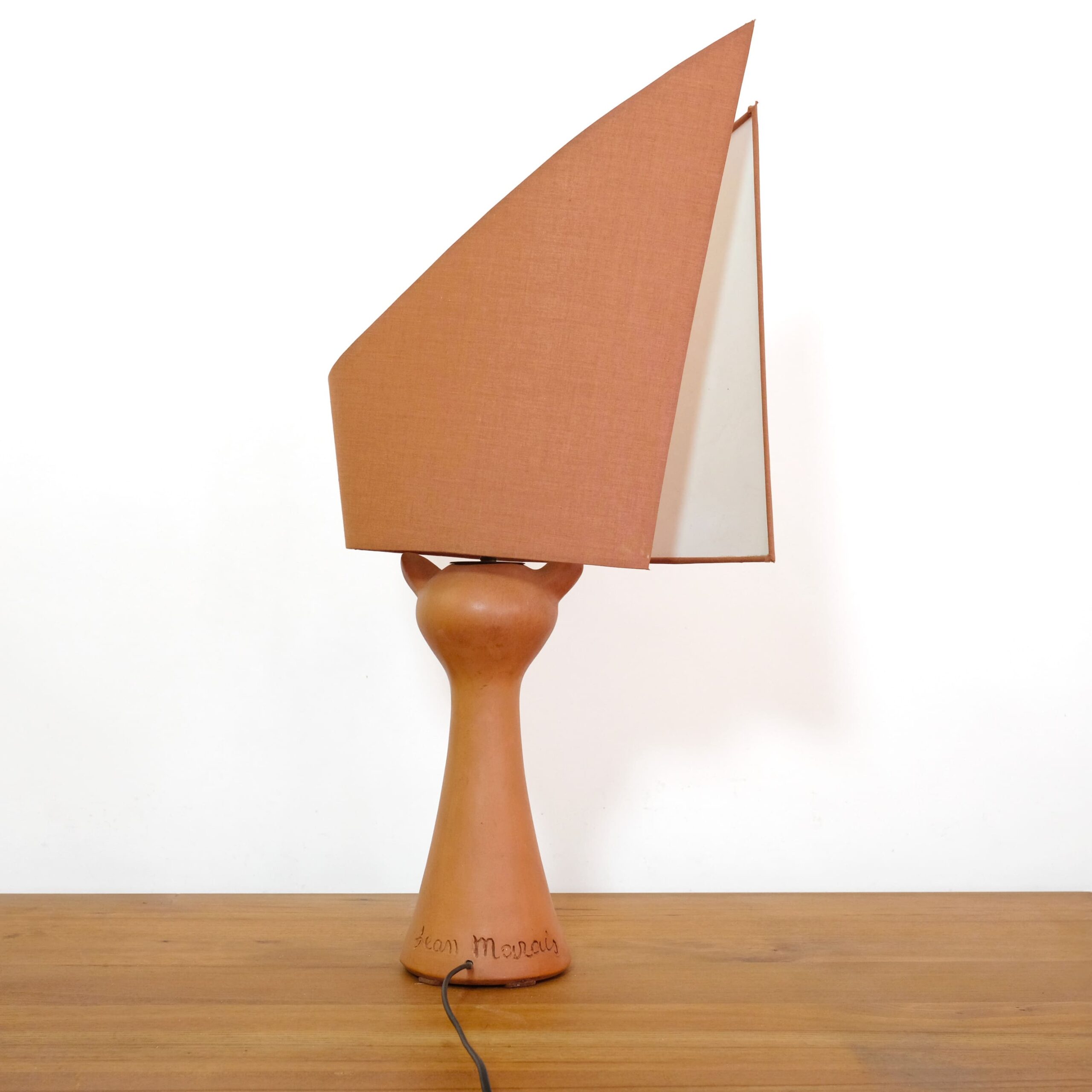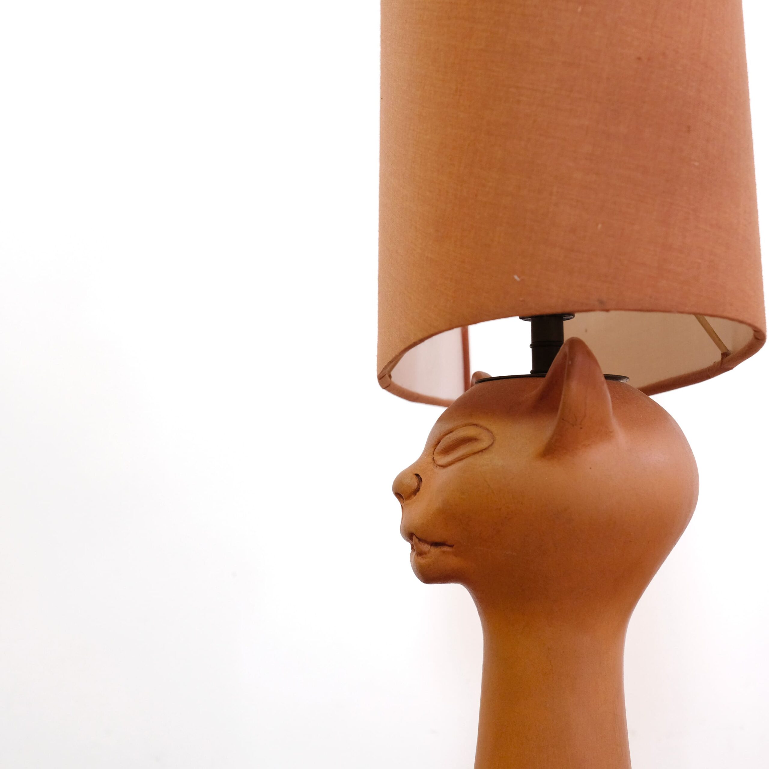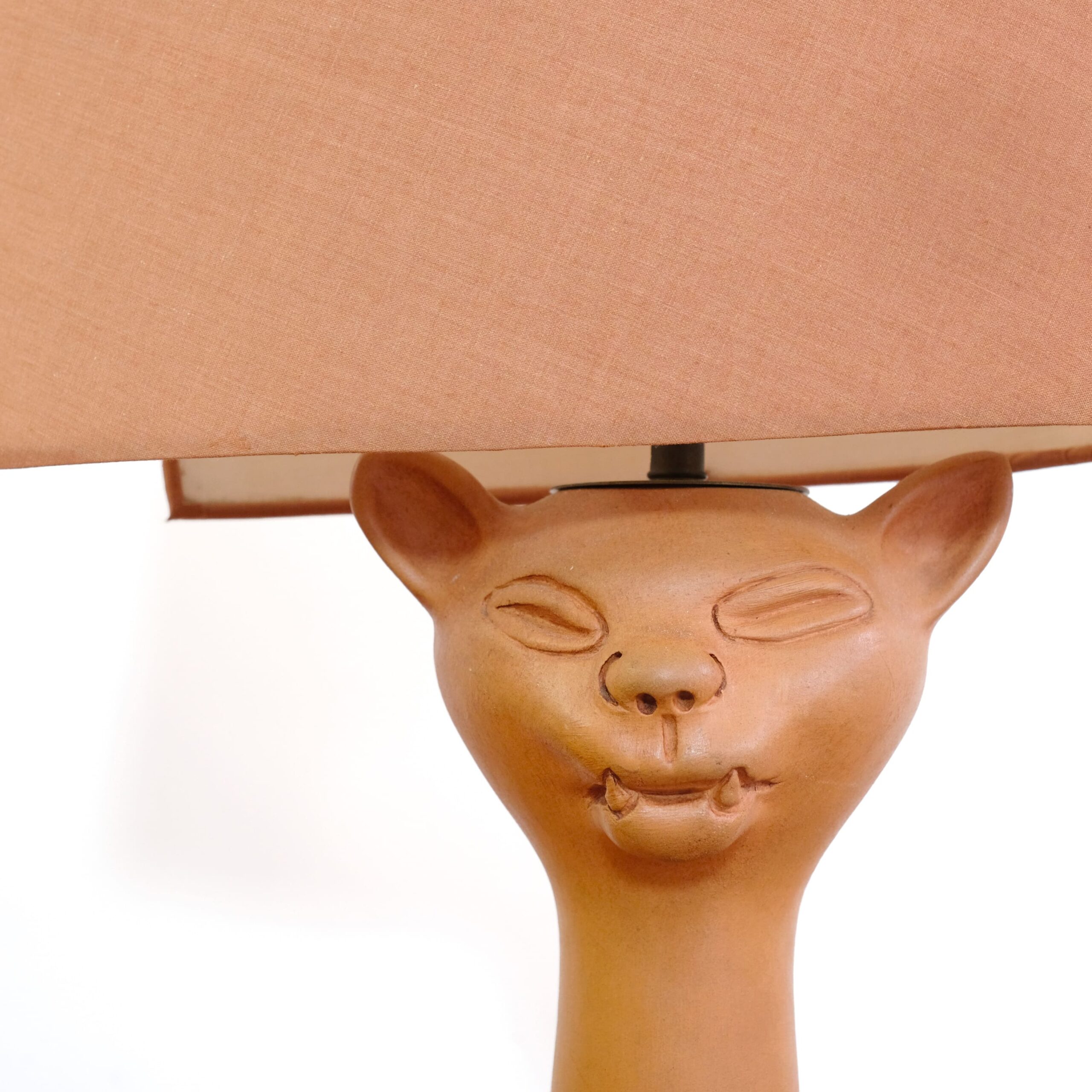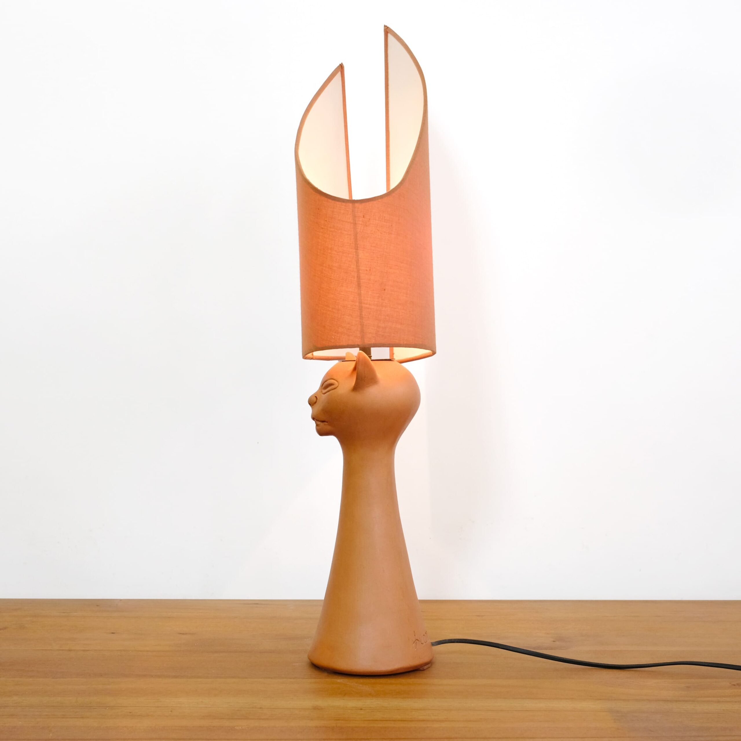 Lampe tête de chat en terre cuite par Jean Marais (1913-1998).