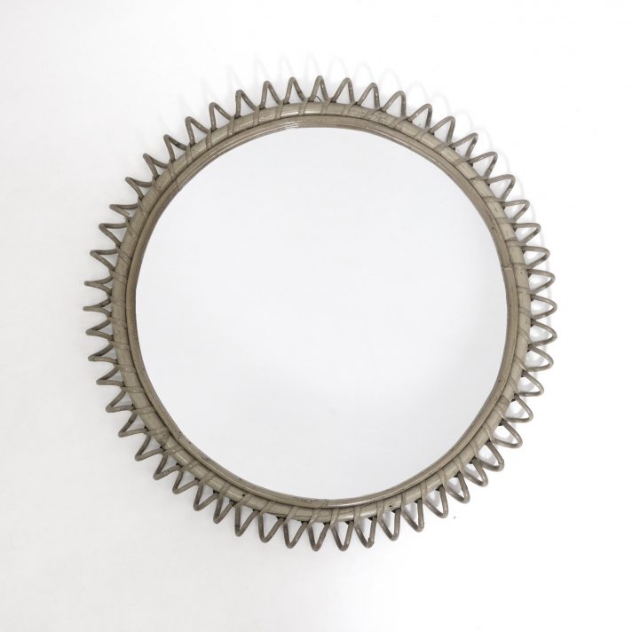 3. Miroir avec un cadre en spirale de rotin, Italie, 49 cm.